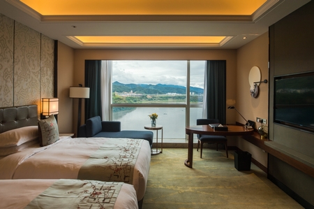 南平雅閣國際大酒店位于延平區(qū)朱熹路56號(hào),酒店距離市中心約7公里,高鐵北站、夏道大橋、咫尺可達(dá)。占地面積約80畝,總建筑面積6.29萬平方米,北塔樓14層,南塔樓13層。酒店集客房、餐飲、娛樂、商務(wù)、大型會(huì)議中心、武夷山水品牌店為一體。擁有各式客房277間,其中江景大床房108間、江景雙床房73間、豪華江景大床房30間、豪華江景套房19間、行政江景大床房27間、行政江景雙床房8間、行政江景套房3間、家庭江景房9間;涵蓋10000平方米全景豪華餐廳包房14個(gè),可容納190人用餐的西餐廳1個(gè),容納52位+2包廂的日餐廳1個(gè);容納68位休閑大堂吧1個(gè);800平方米無柱式國際會(huì)議廳1個(gè)、680平方米小宴會(huì)廳1個(gè),會(huì)議室5個(gè);休閑茶藝包房8間、健身房1個(gè)和361個(gè)停車位的停車場(chǎng)等配套設(shè)施。