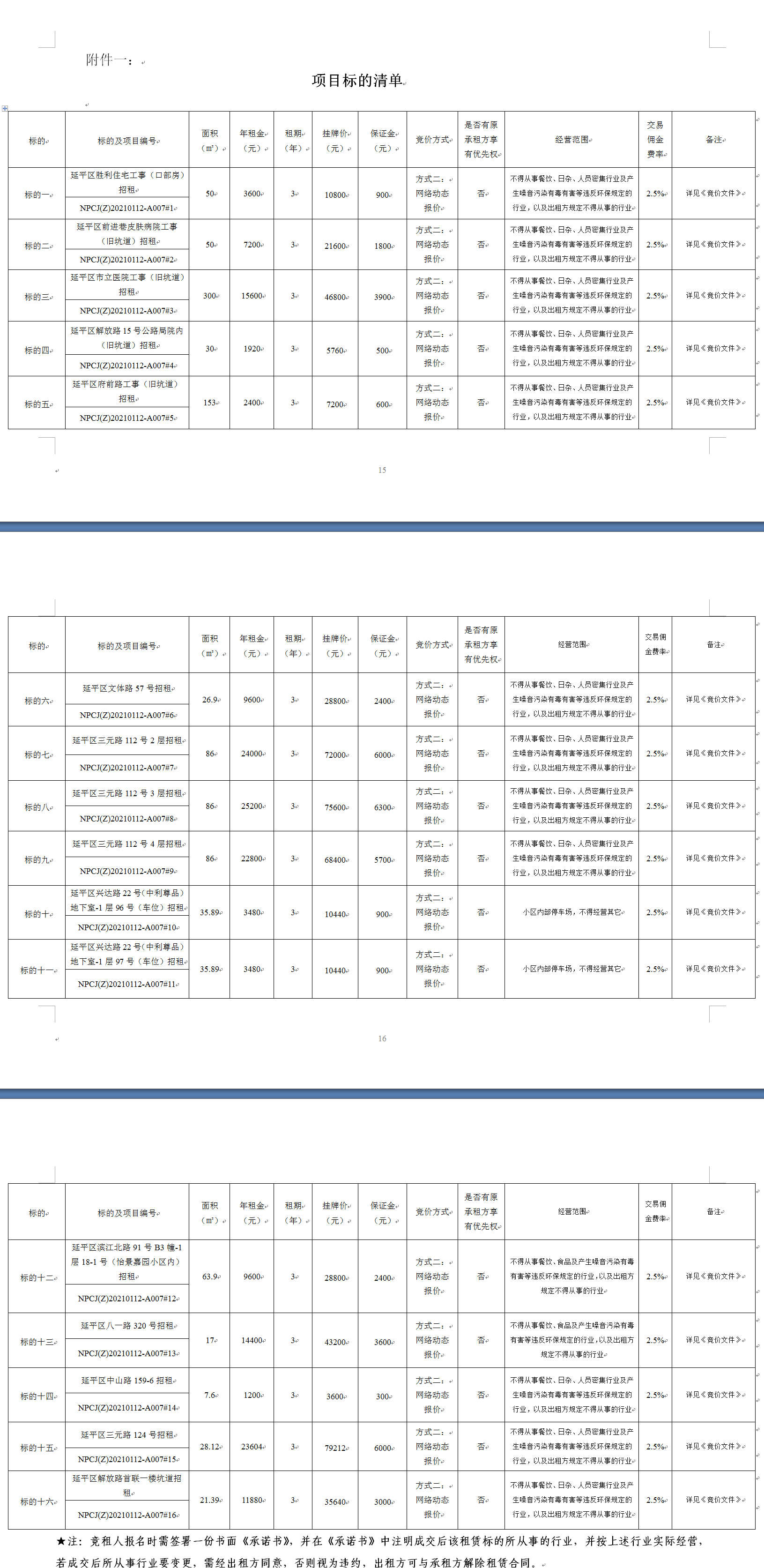 交易保證金(元) | 詳見附件一 | 是否設(shè)置原承租人優(yōu)先權(quán) | 否 | | |||||||||||||||