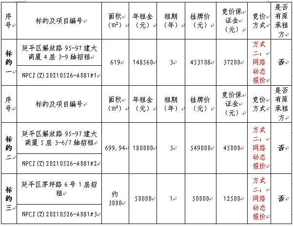 2.為便于競買人計(jì)算面積單價(jià),網(wǎng)絡(luò)競價(jià)以年租金底價(jià)進(jìn)行報(bào)價(jià),最終成交價(jià)以年租金的最高報(bào)價(jià)×租賃期限。